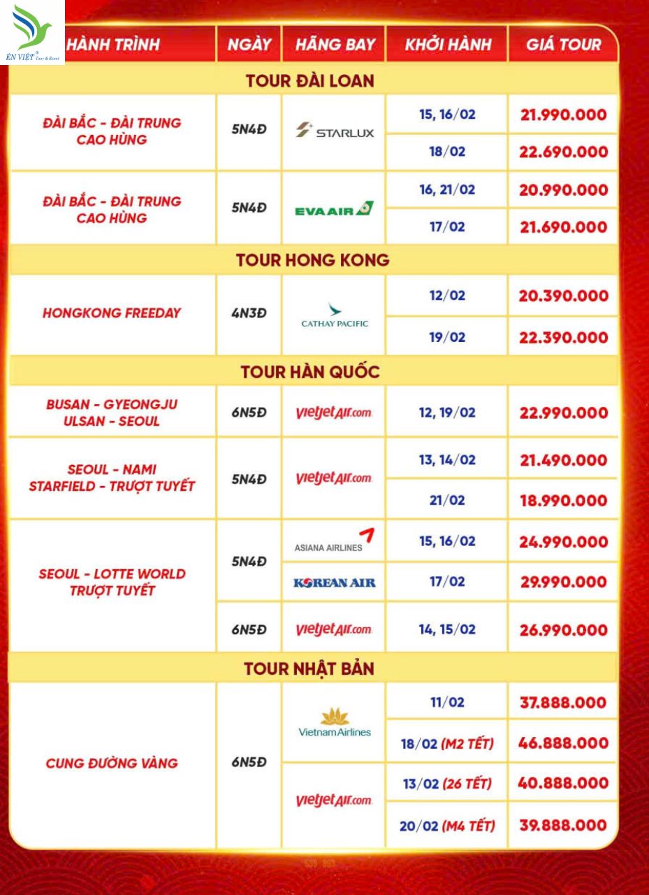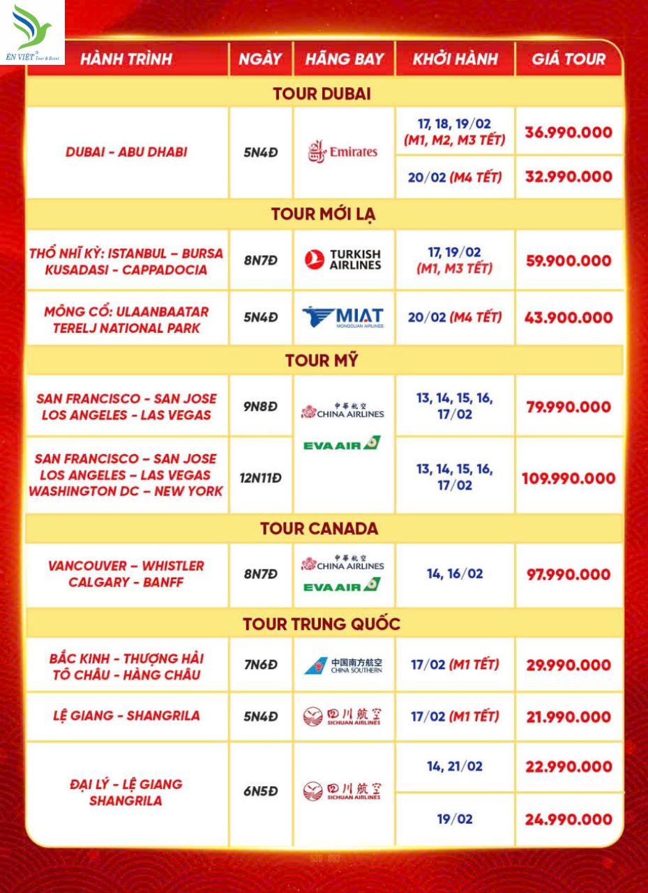 ÉN VIỆT chính thức mở lịch khởi hành TẾT BÍNH NGỌ 2026, với hàng loạt điểm đến “cực hot”: