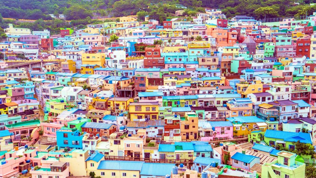 - Làng bích họa Gamchoen Village – từng là một ngôi làng cổ trên đồi, nhìn hướng ra biển với những căn nhà cũ kỹ, xuống cấp. Năm 2009 ngôi làng được những nghệ