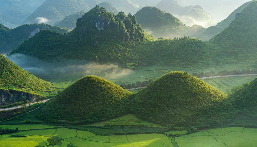 - Sáng 06h00: Ăn sáng và khởi hành đi chiêm ngưỡng những cảnh đẹp hùng vỹ của Công viên địa chất toàn cầu Cao nguyên đá Đồng Văn. Dọc đường đi Quý khách dừng ghé thăm: