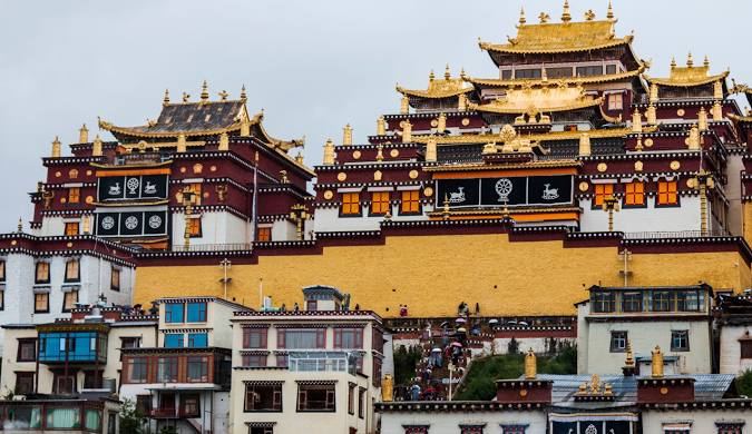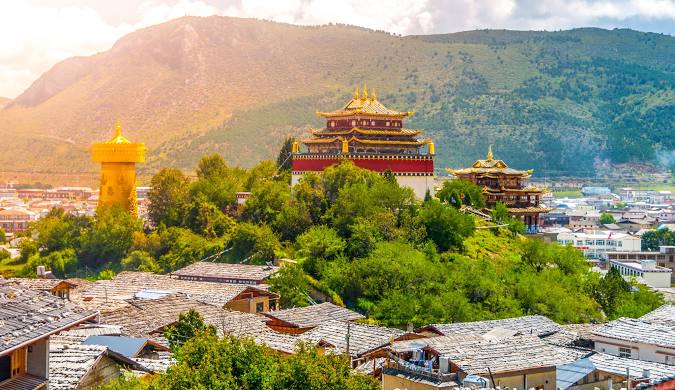 - Đền Songzanlin: hình ảnh thu nhỏ của Cung điện Potala (Tây Tạng) nằm trên độ cao 3200m.Nổi bật với những mái nhọn vàng rực rỡ là một ngôi đền lớn nhất Vân Nam, nơi tập trung những nét văn hóa tiêu biểu của người Tạng, được xây dựng từ năm 1679 bởi vị Lạt ma thứ 5, hiện vẫn được bảo tồn nguyên vẹn.