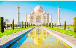 bằng đá cẩm thạch và cũng là tượng đài đẹp nhất của Ấn Độ được đặt giữa những khu vườn kiểng. Đây không chỉ là một ngôi đền đẹp bởi kiến trúc độc đáo mà ẩn sâu bên trong chính câu chuyện tình yêu bất tử của vị vua Shah Jahan dành cho người vợ yêu quý của mình. Và sau gần 400 năm, Taj Mahal vẫn là một viên ngọc trắng trinh nguyên, lung linh tỏa sáng mà không gì có thể làm lu mờ vẻ đẹp diễm lệ của nó.