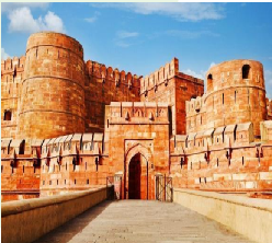 ❖ Pháo đài Agra: Pháo đài Agra là pháo đài lớn bằng đá sa thạch đỏ từ thế kỷ 16, nằm cách Taj Mahal khoảng 2,5 km về phía tây bắc. Quần thể pháo đài rộng lớn này còn được biết đến với tên gọi Pháo đài Đỏ ở Agra và do các hoàng đế Mughal xây dựng khi Agra còn là thành phố thủ đô. Đằng sau những bức tường này là các cung điện (Jahāngīr, Khās Mahal, Shish Mahal), sảnh đường và nhà thờ Hồi giáo Ngọc trai. Một vài công trình trong số này được lát toàn bộ bằng đá cẩm thạch tinh khiết và pietra dura. Nổi bật trong số những điểm nhấn ở pháo đài phải kể đến cung điện Khas Mahal và tòa tháp bát giác cũng bằng đá cẩm thạch trắng bên trong. Đây chính là nơi giam giữ Shah Jahan sau khi bị con trai mình lật đổ. Từ ban công của cung điện này, ngài có thể hướng tầm mắt ra Taj Mahal, lăng mộ tuyệt đẹp mà ngài đã ủy thác cho phu nhân của mình.