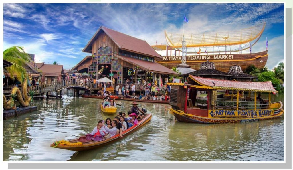 - Chợ Nổi Bốn Miền – Bao trùm cả một khu vực có diện tích lên đến 100.000m2. Chợ Nổi 4 miền (Four Regions Floating Market) là một trong những chợ nổi Pattaya nổi tiếng nhất, tại đây quý khách tự do mua sắm và thưởng thức các món ăn đặc sản Thái Lan.
