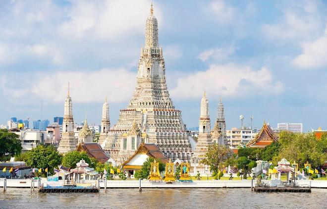 - Ghé thăm chùa Wat Arun: là một trong những ngôi chùa cổ kính nhất của Bangkok. Ngôi chùa hùng vĩ cao hơn 70 m. Xung quanh các ngọn tháp, những mảnh kính hoặc gốm sứ nhỏ được trang trí, tạo màu sắc lộng lẫy, bắt mắt, làm nên nét đẹp riêng biệt cho điểm đến này.