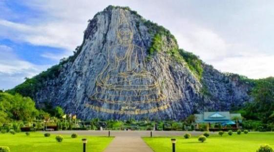- Khao Chee Chan – Trân Bảo Phật Sơn- tượng Phật Thích Ca Mâu Ni đang ngồi thiền- được tạc trên một vách núi giữa trời. Sự độc đáo của bức tượng Phật lớn này là được khắc nổi bằng vàng ròng 24k, cao 130 m, rộng hơn 70m, được xây dựng vào năm 1996