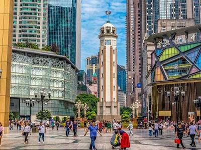 Ăn trưa tại nhà hàng địa phương. Đoàn tiếp tục tham quan Phố đi bộ bia Giải Phóng – trung tâm, biểu tượng tinh thần của Trùng Khánh.