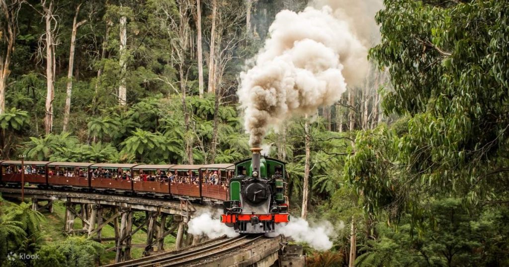 - Xe lửa hơi nước: Puffing Billy – Hành trình trên tàu Puffing Billy sẽ đưa bạn đi qua dãy Dandenong xanh mướt đẹp huyền diệu của nước Úc trên một đường tàu hơi nước được bảo tồn cực kỳ tốt. Là cơ hội tuyệt vời cho bạn một chuyến đi thư giãn và hít thở bầu không khí trong lành khi tàu chạy qua khu rừng nhiệt đới ôn hòa.